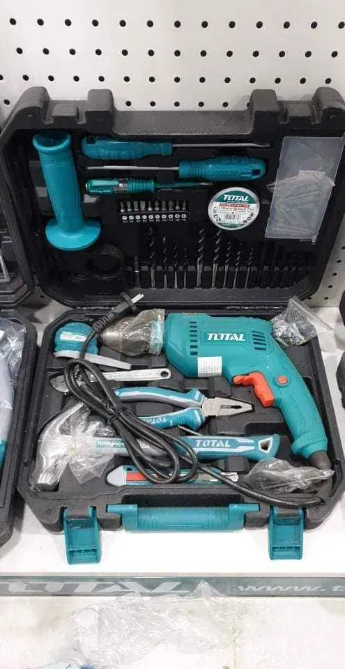 مجموعة أدوات توتال 115 قطعة (مثقاب تأثير 680 واط) تشمل: 1 قطعة 680 واط مثقاب تأثير 1 قطعة 7 "كماشة مركبة 1 قطعة 80z مطرقة بمخلب 1 قطعة SL5.5x100 ملم مفك براغي 1 قطعة PH1x100 ملم مفك 1 قطعة 6" مفتاح قابل للتعديل 1 قطعة سكينة نصل سريع 1 قطعة مستوى روح صغير 1 قطعة 3 متر شريط قياس 6 قطع 1/4 "مقبس سداسي - 5 مم ، 6 مم ، 8 مم ، 9 مم ، 10 مم ، 11 مم 1 قطعة محول مقبس 4.6 (25 مم) 10 قطع مفك بت- PH1 ، PH2 ، PZ1 ، PZ2 ، SL4 ، SL6 ، Hex4 ، Hex5 ، T20 ، T25 قطعة واحدة حامل لقم مغناطيسي 4 قطع لقمة ثقب الخشب 4،5،6،8 مللي متر 5 قطع لقم البناء 4،5،6،8،10 مللي متر 5 قطع لقم مثقاب ملتوي 2،3،4،5،6 مللي متر 30 قطعة براغي (10 قطعة x ST3.5 ، 10 قطع × ST4 ، 10 قطع × ST5) 30 قطعة سدادات بلاستيكية (10 × 5 مم ، 10 × 6 مم ، 10 × 8 مم) معبأة بواسطة علبة قالب النفخ
